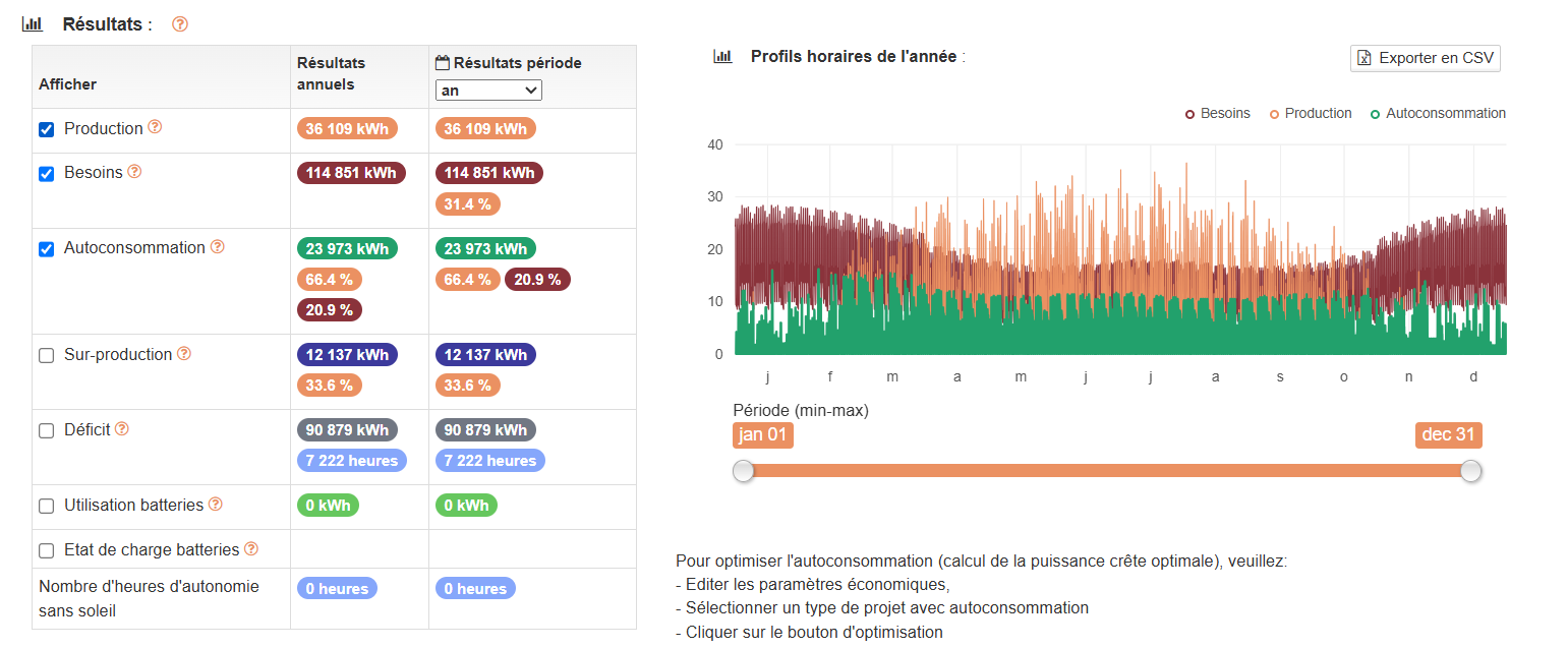 Annual energy production and self-consumption results based on the university’s energy demand profile