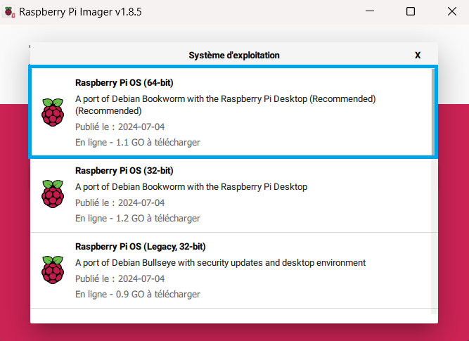 Raspberry Pi OS (64-bit) was installed and preconfigured using Raspberry Pi Imager.