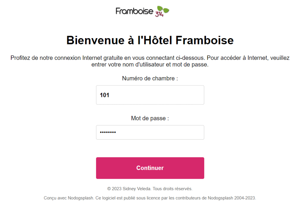 A captive portal was implemented using Nodogsplash to control user access. Authentication rules, session duration, and client limits were configured to simulate a real public Wi-Fi environment. The captive portal page was customized using HTML and CSS to provide a hotel-style user interface with branded visuals and a simple authentication system.